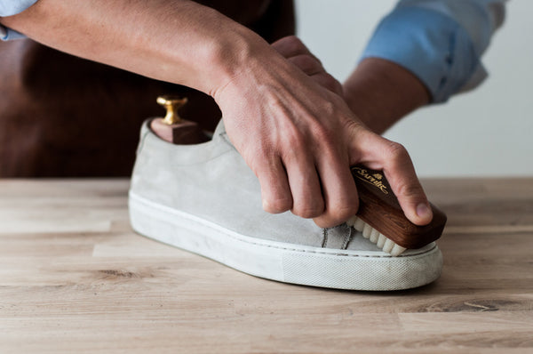 In this guide we are demonstrating how to take care of nubuck. The shoes in this guide are a pair of sneakers in nubuck from Common Projects.