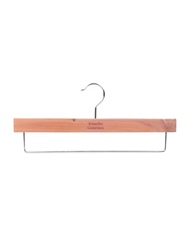 The hanger is in red American cedar, which equips it with the right attributes in order to absorb the moisture that appears in damp clothes and at the same time brings fresh air and fragrance to the wardrobe.